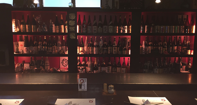 16席ある日本酒がずらりと並んだバーカウンターは、
